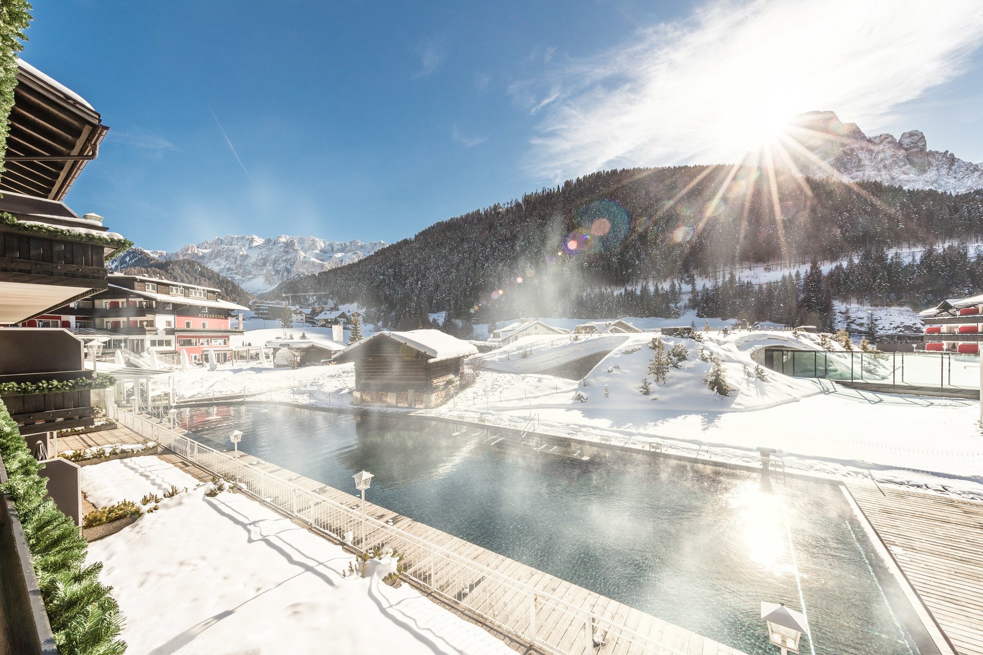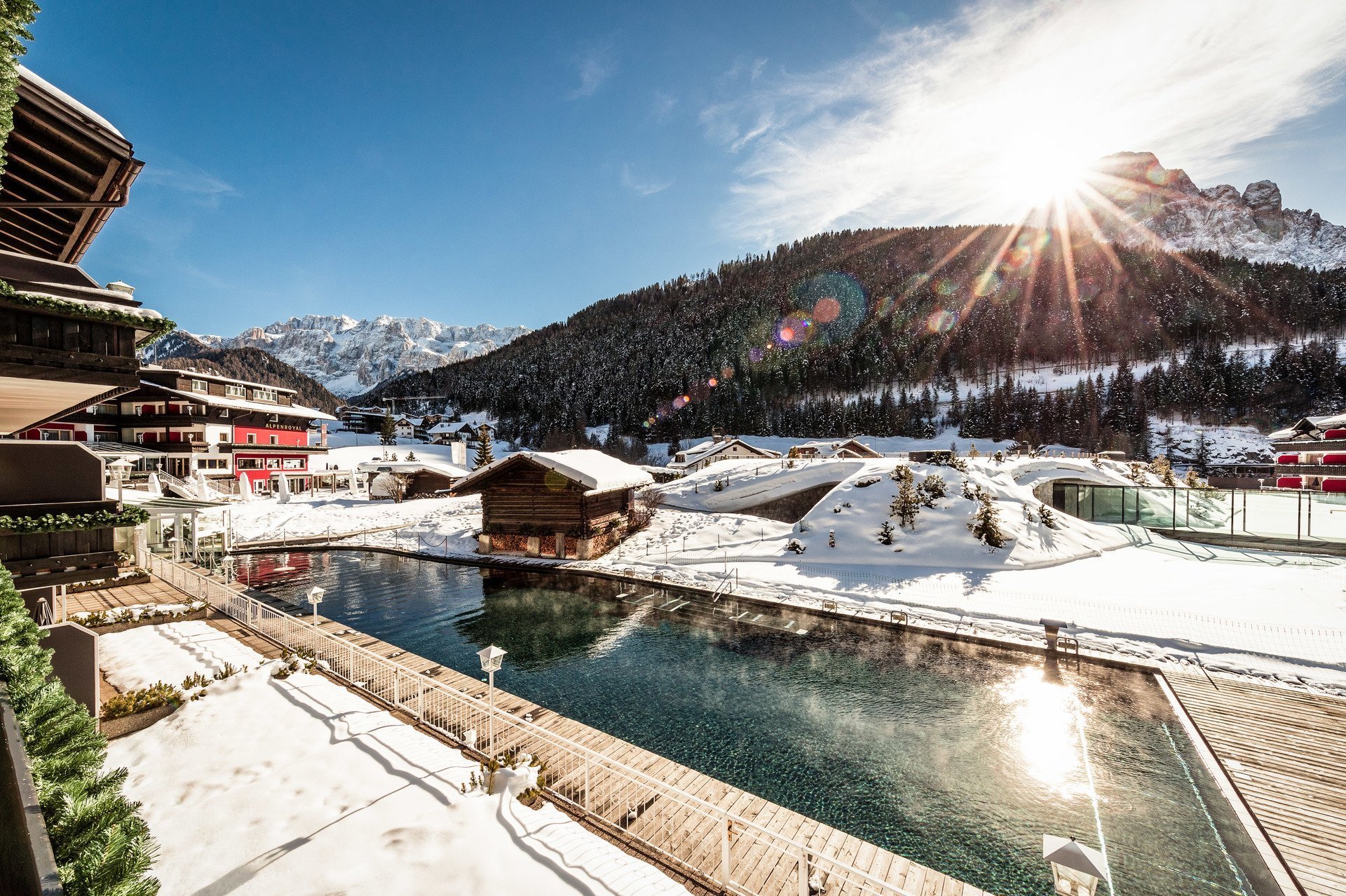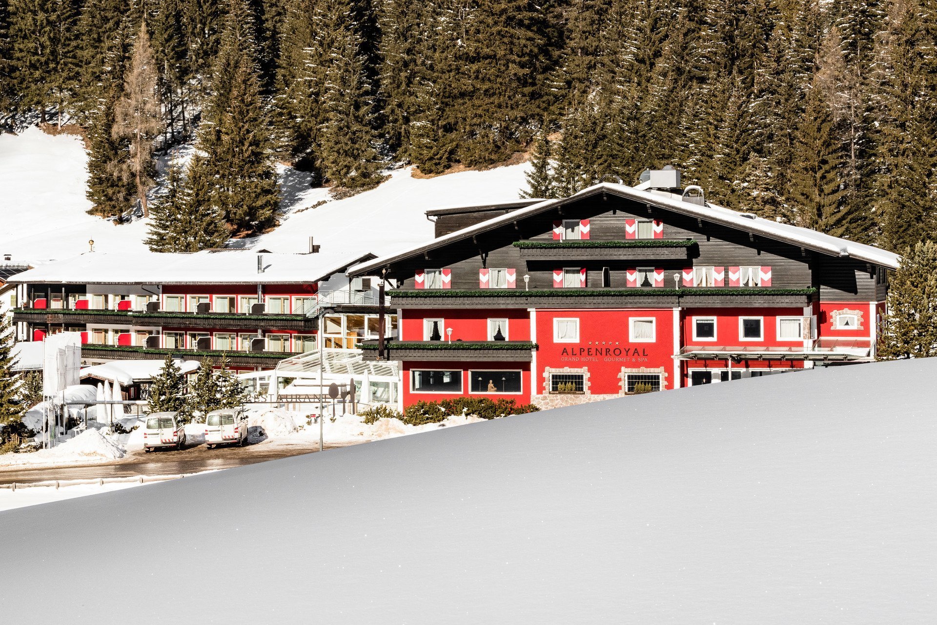 Отель предлагает доступ к ski-in ski-out, когда из раздевалки вы попадаете сразу на склон. В спа можно насладиться бьюти-процедурами на косметике Maria Galland или аюрведическим массажем, отдохнуть у бассейна со стеклянной крышей и поплавать в просторном открытом бассейне, а в теплое время года даже искупаться в настоящем альпийском озере. Также к услугам гостей собственная вертолетная площадка.