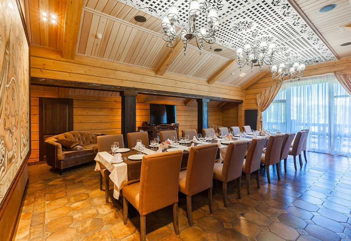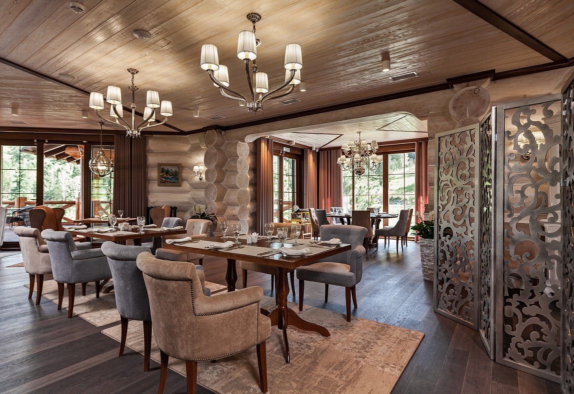На огромной территории поместились три небольших озера с пляжем, два десятка деревянных домов с комнатами для гостей, спа, клиника, детский клуб, вертолетная площадка, собственная мараловодческая ферма и теплицы.