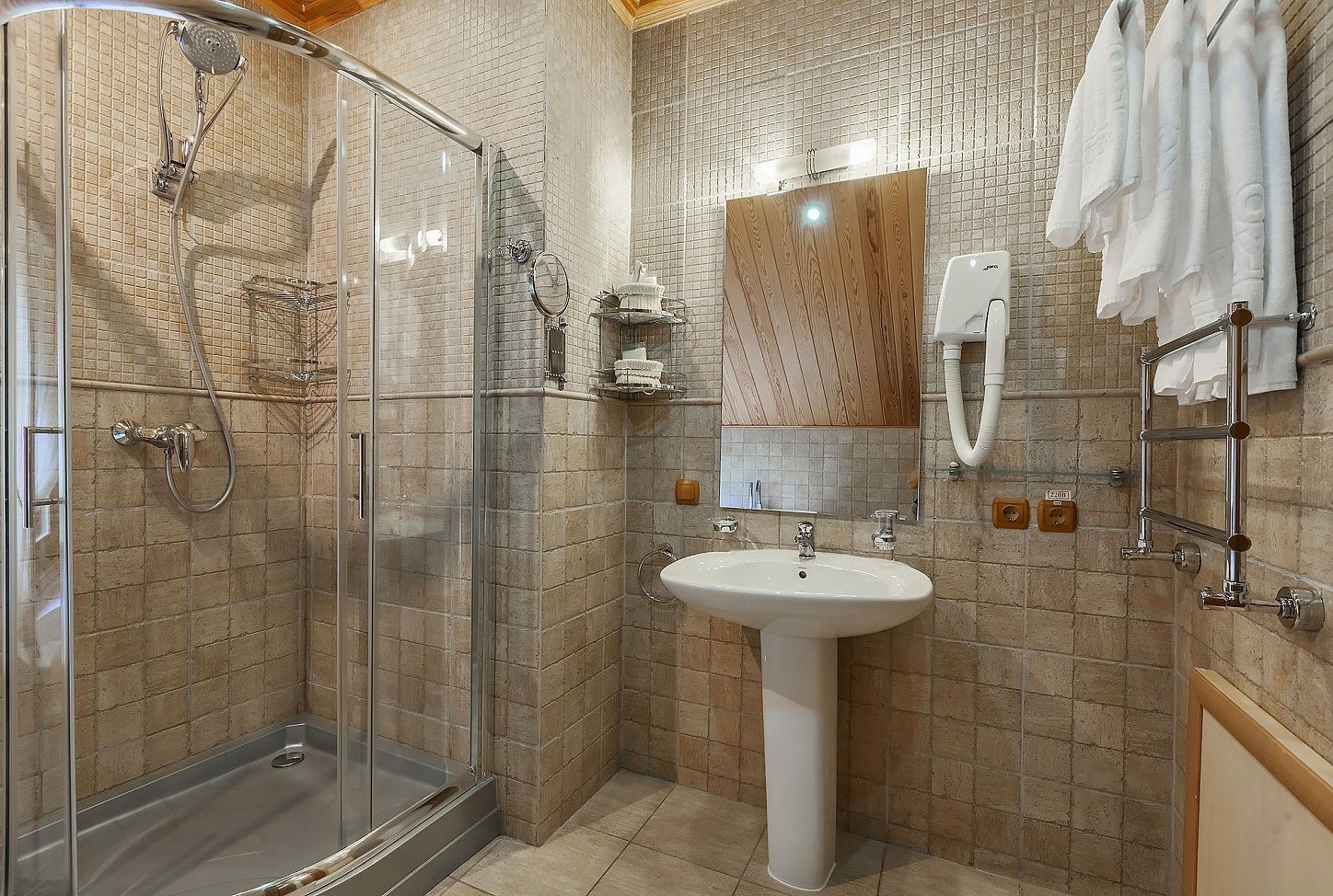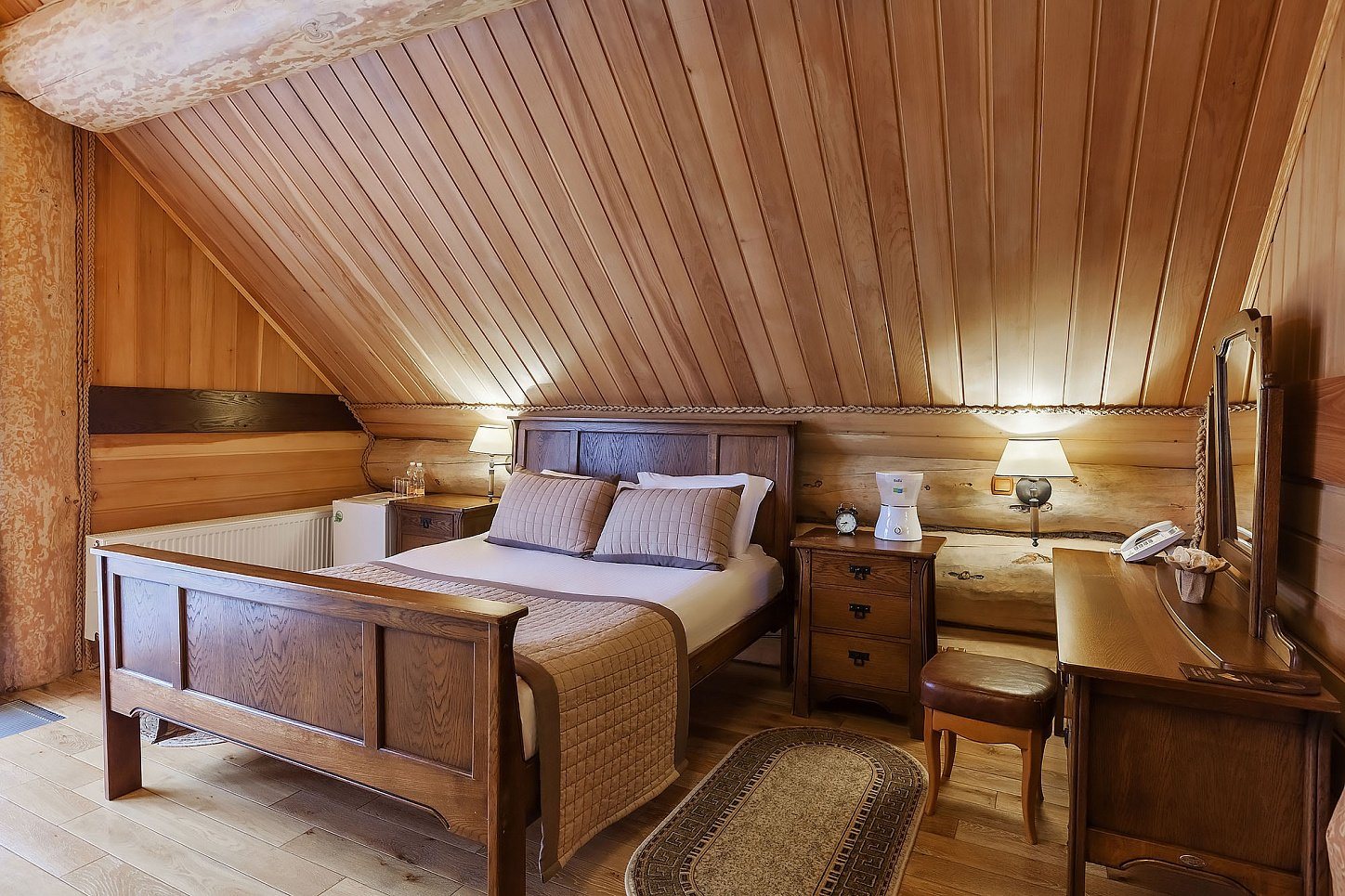 В интерьерах номеров чувствуются ностальгические нотки, будто вы попали на интеллигентную дачу. Помимо номеров, на курорте есть коттедж с апартаментами, который очень удобно снимать на семью.