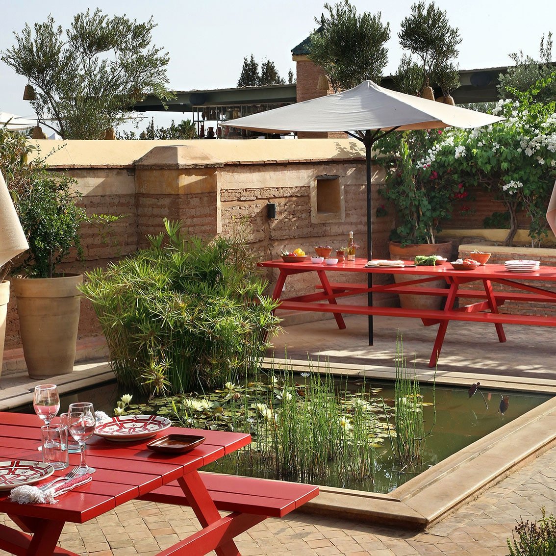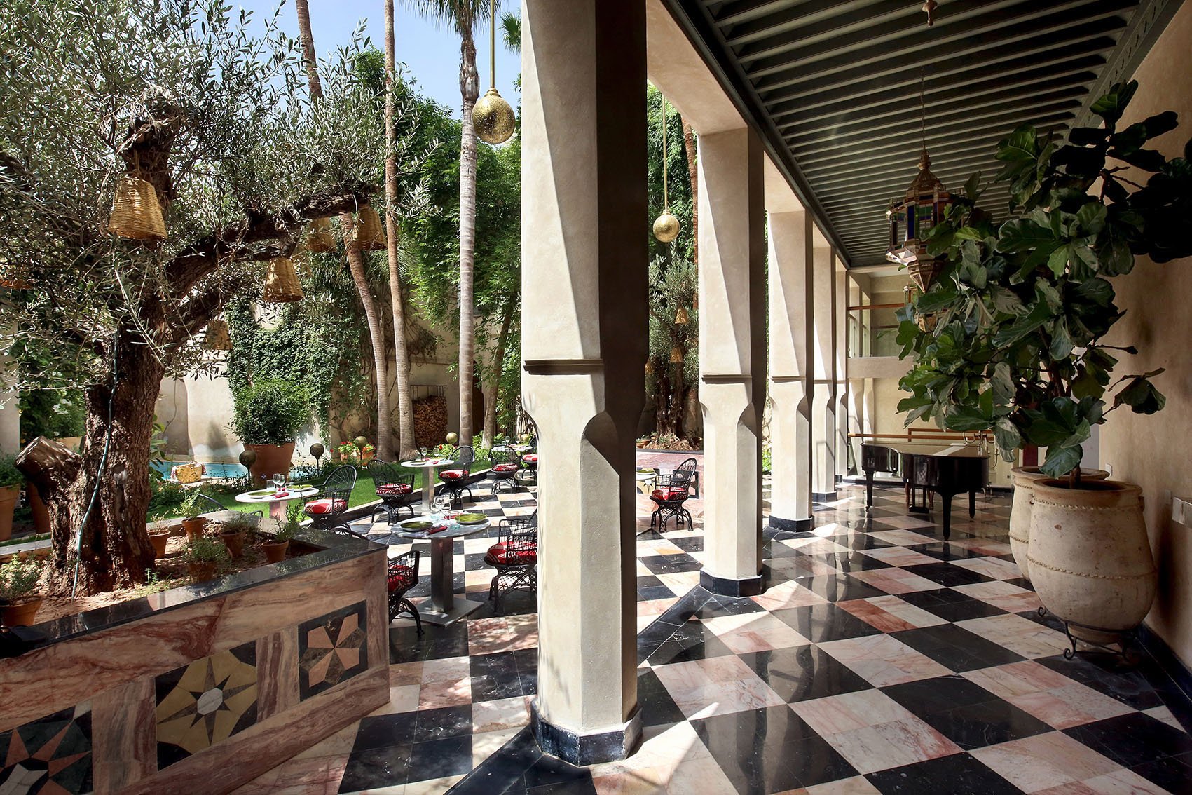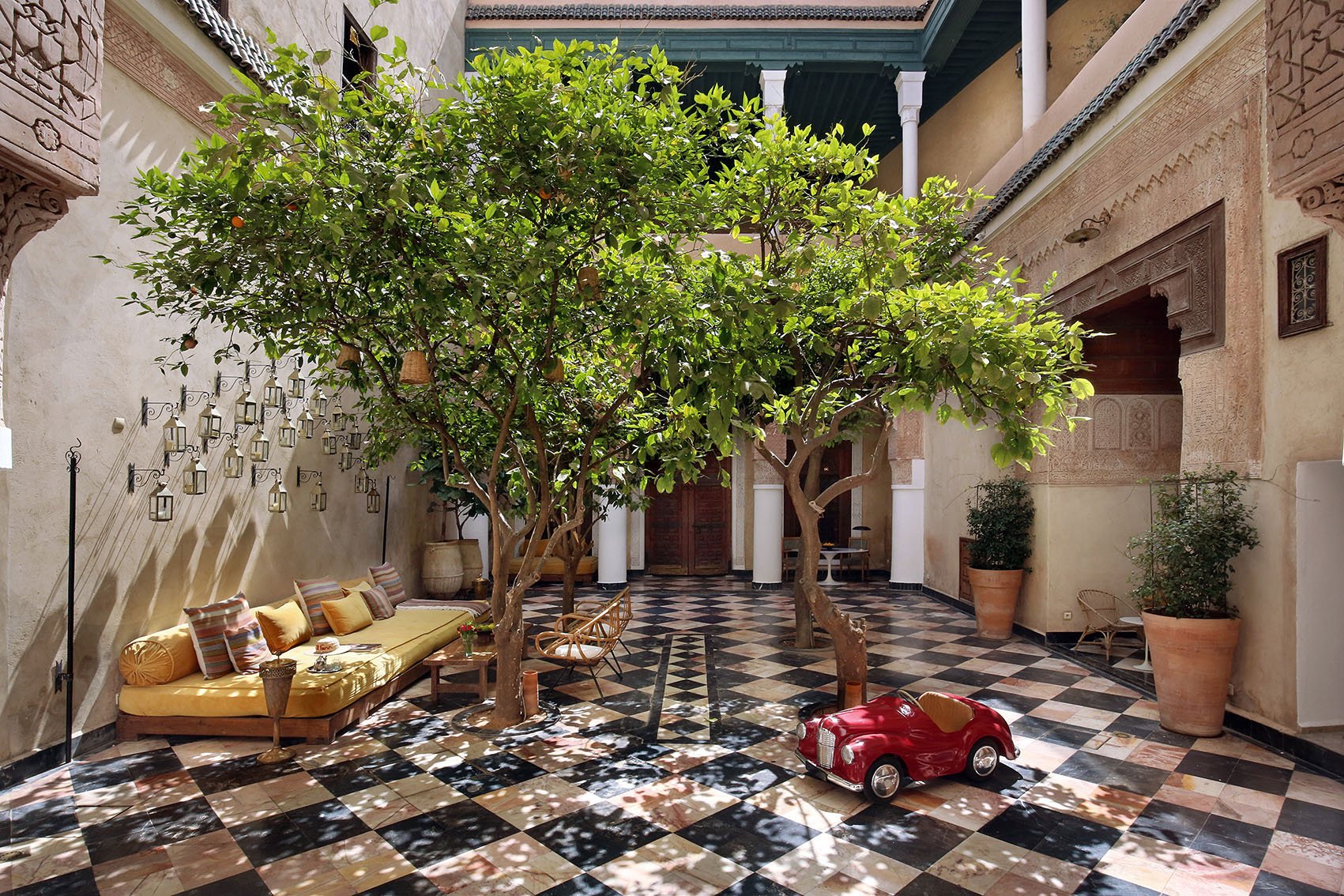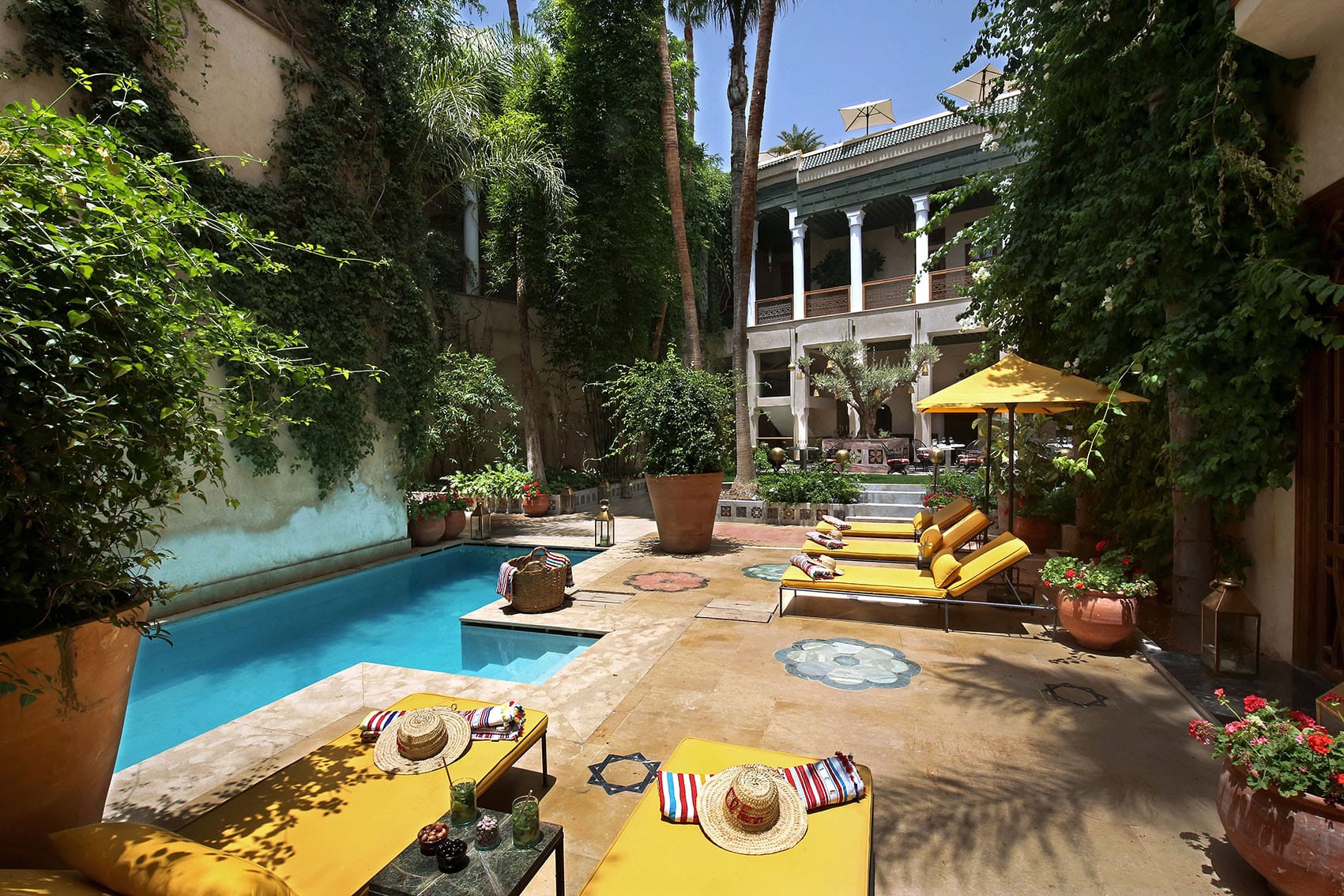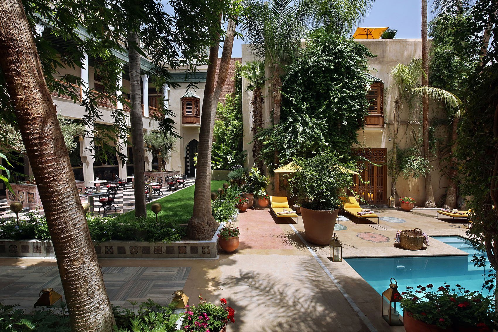 Бутик-отель с 31 индивидуально оформленными номерами и люксами, внутренними дворами, усаженными деревьями, тремя бассейнами, террасой на крыше площадью 650 кв метров, спа-салоном, 2 коктейль-барами и магазином, а также семьей местных черепах является идеальным местом для отдыха, из которого можно открыть для себя красоту Марракеша.