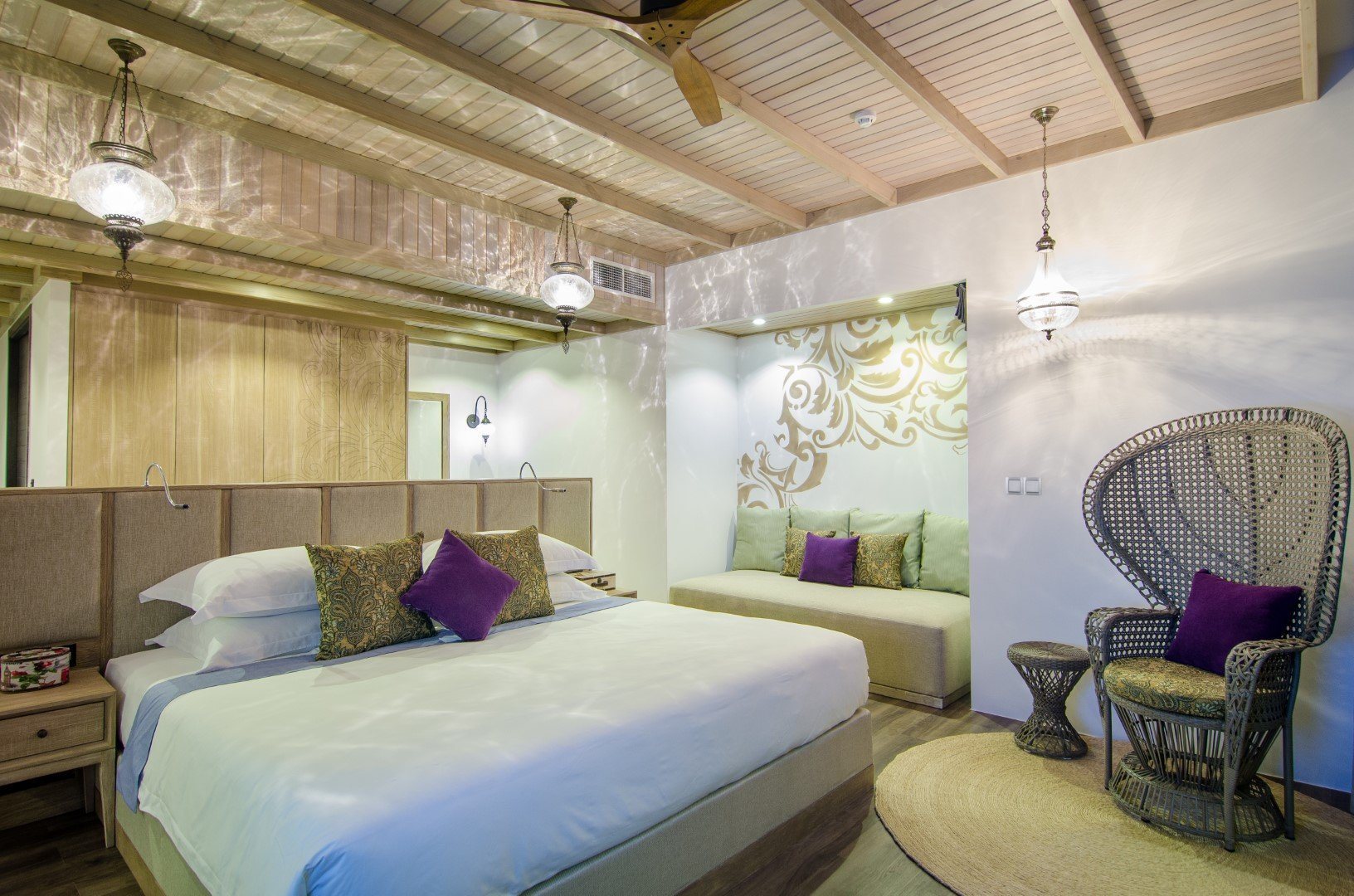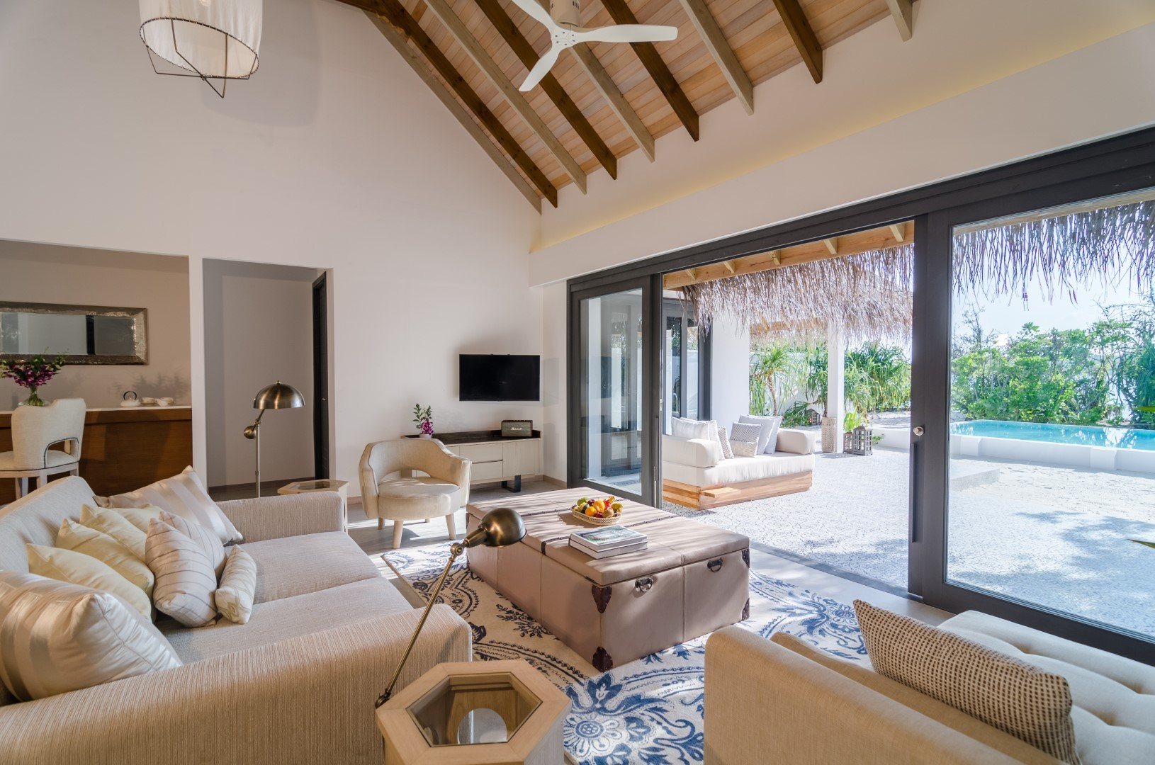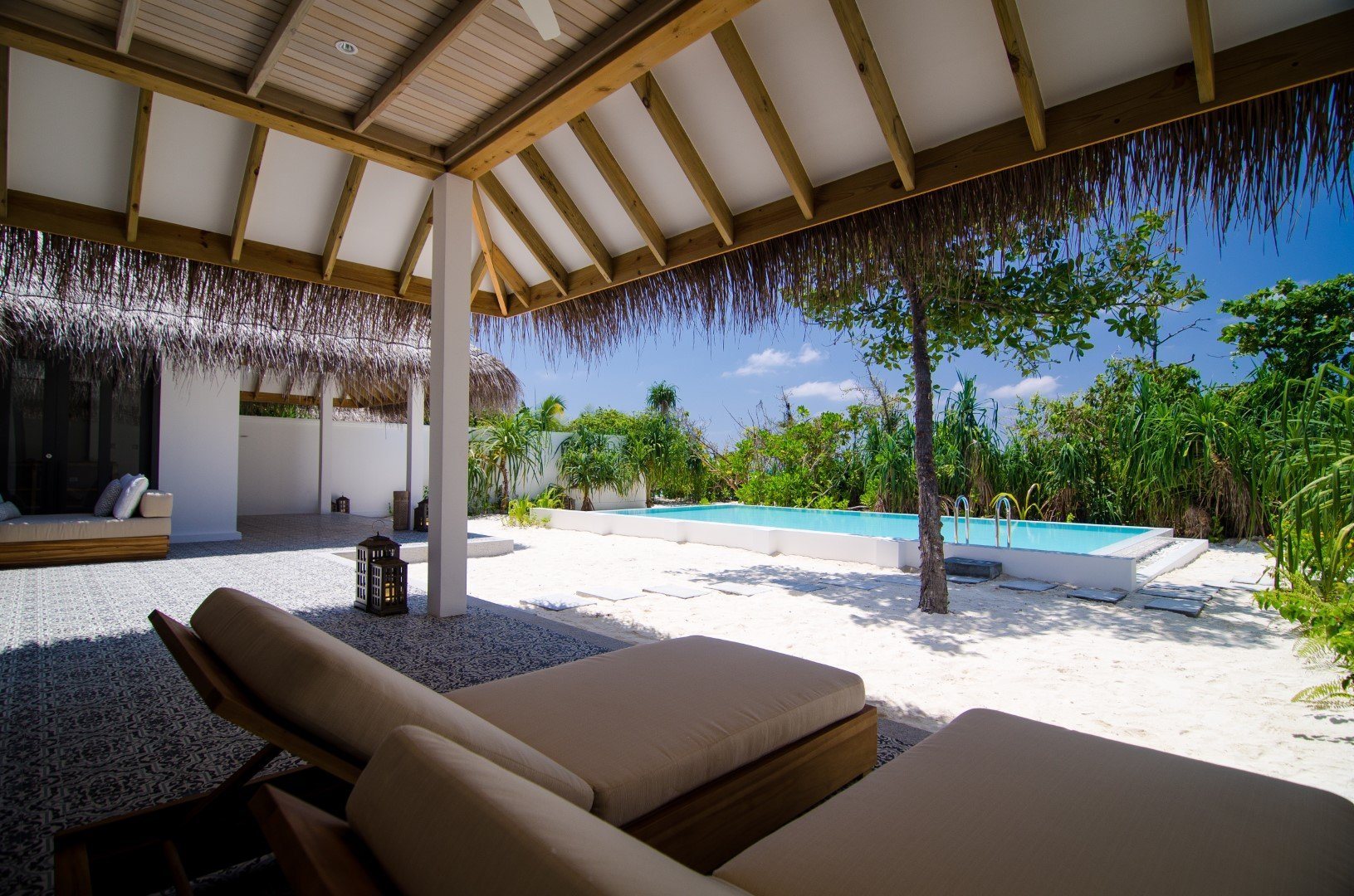 Дополнительное обаяние курорту придают тонкие шутки на тему ретро-люкса: например, на каждой вилле есть проигрыватель с коллекцией винила, а также винтажный телефон, по которому можно сделать только одно: заказать в номер шампанское.