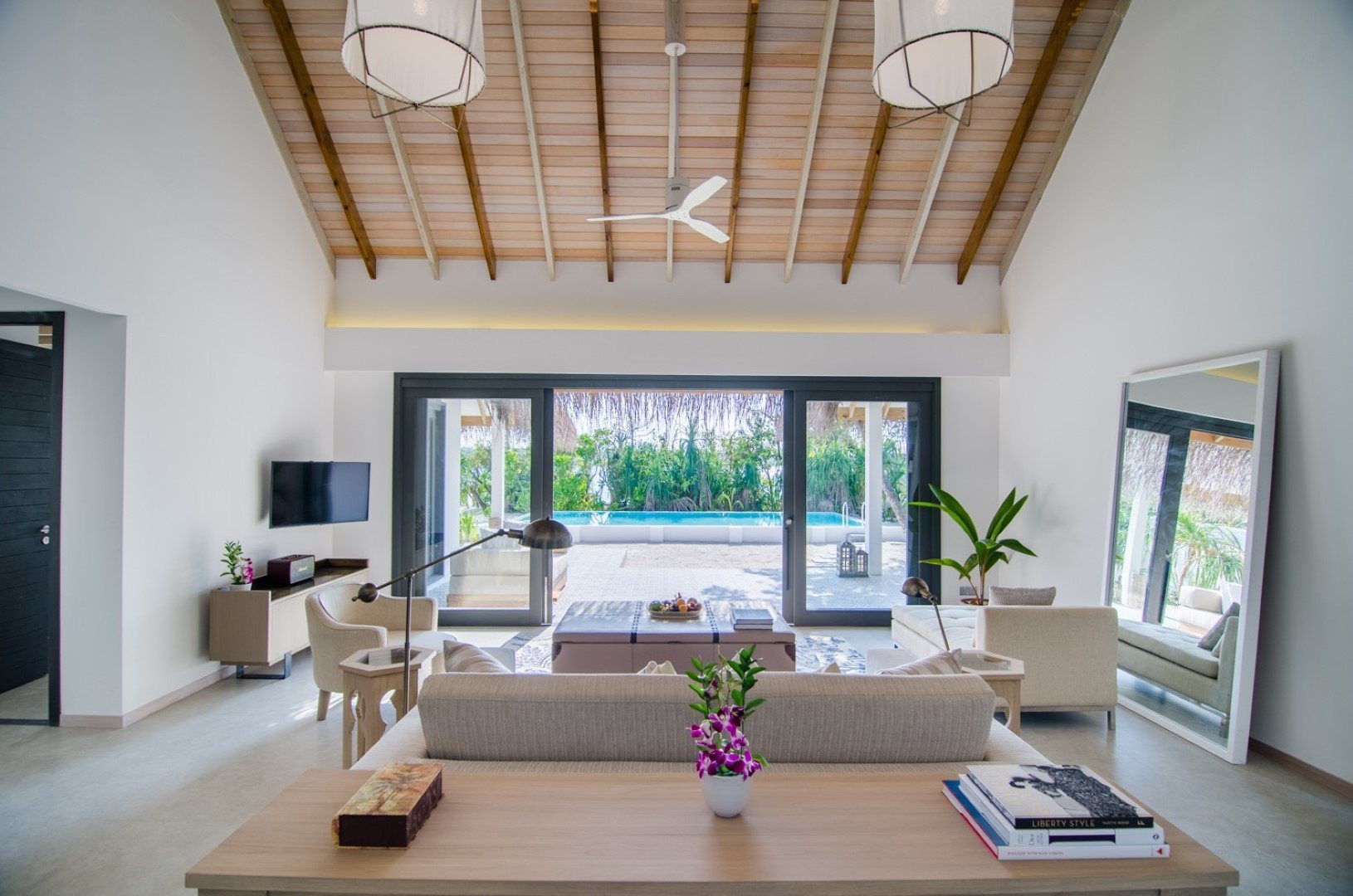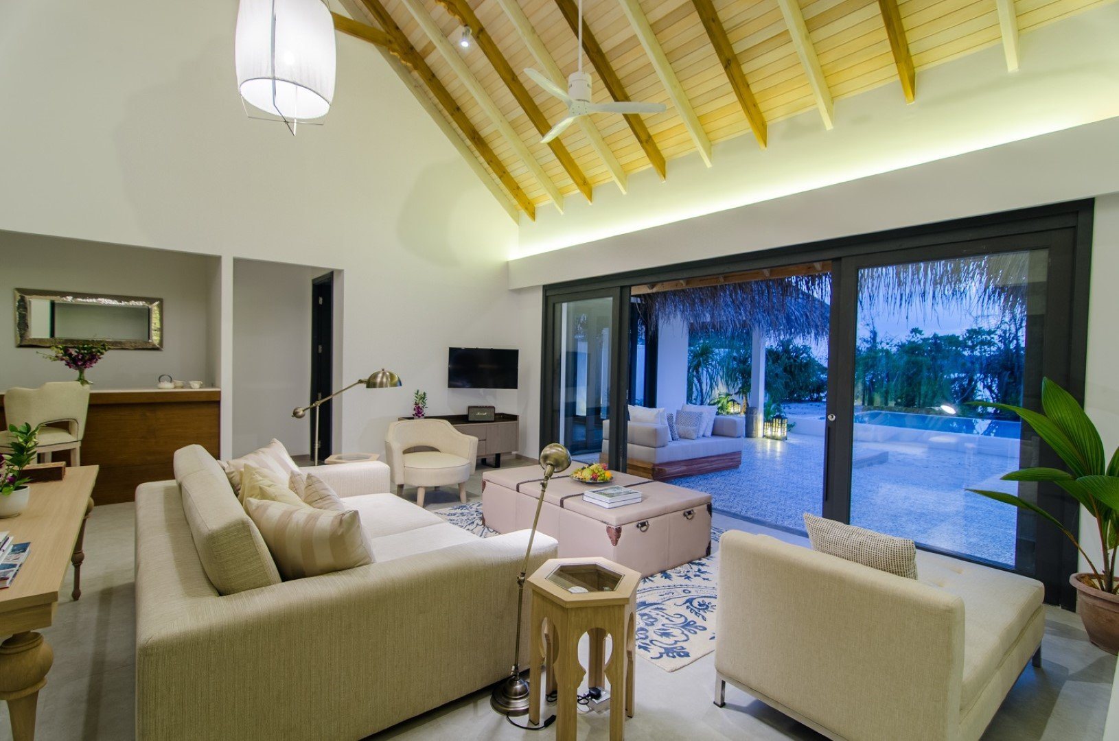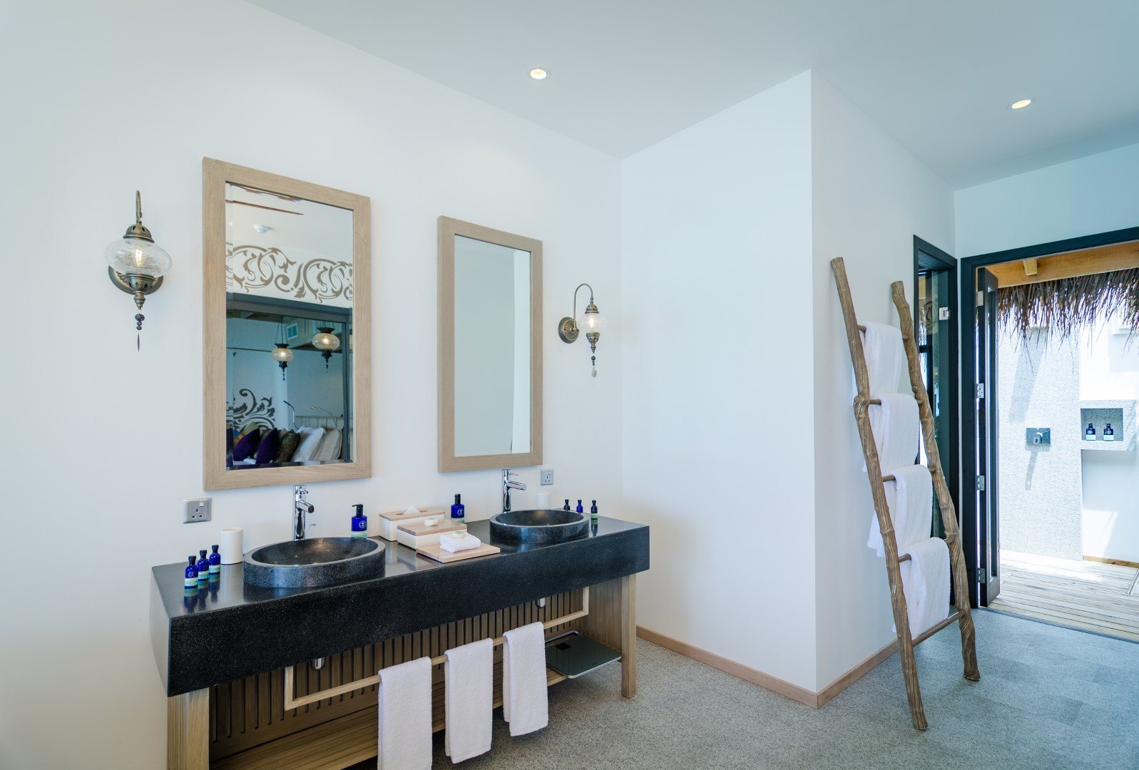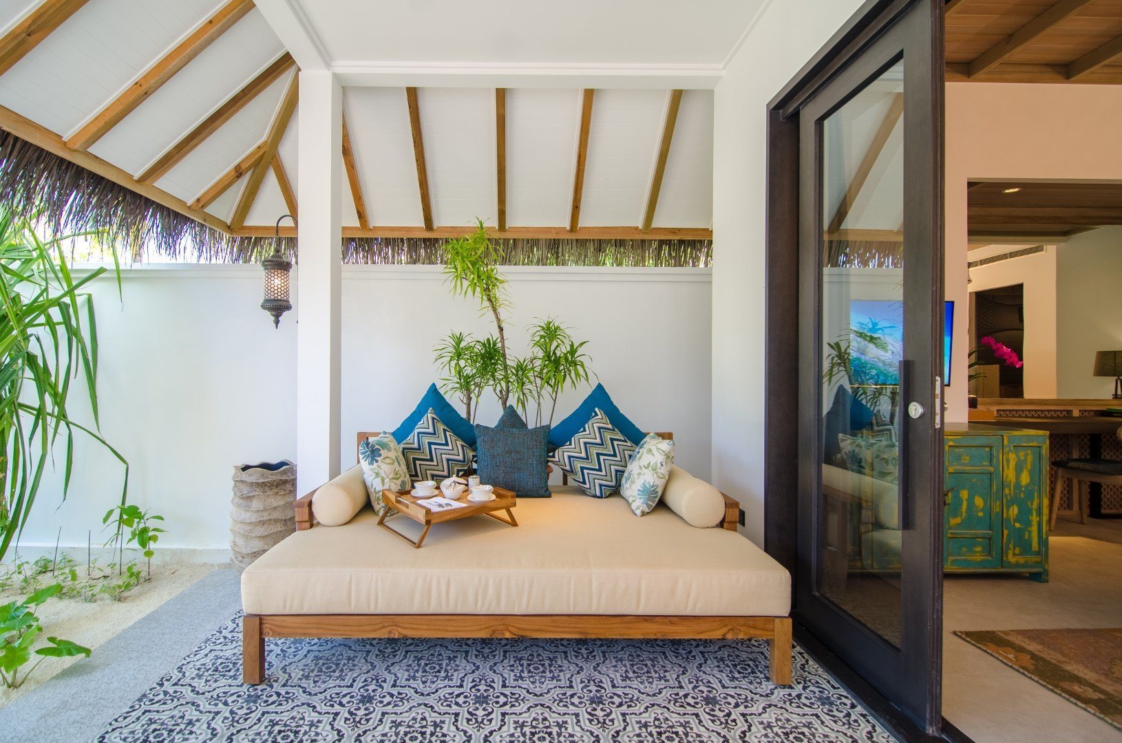Дополнительное обаяние курорту придают тонкие шутки на тему ретро-люкса: например, на каждой вилле есть проигрыватель с коллекцией винила, а также винтажный телефон, по которому можно сделать только одно: заказать в номер шампанское.