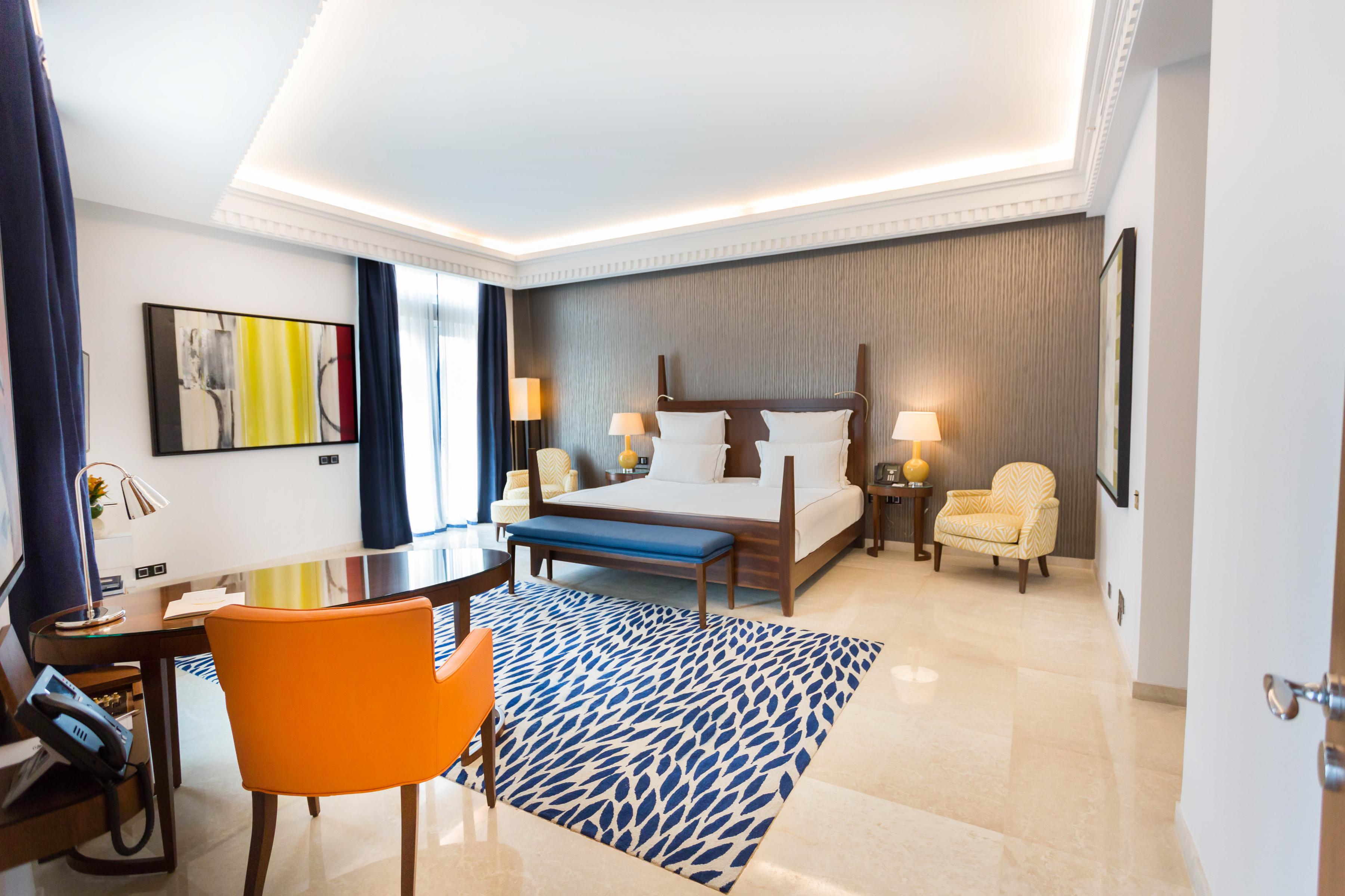 Все 103 элегантных номера и люкса были спроектированы таким образом, чтобы максимально использовать средиземноморское солнце и виды на исторический центр города. В современном дизайне интерьеров от Мэри Фокс Линтон использованы пастельные оттенки синего, зеленого и сиреневого, а ванные комнаты отделаны темно-серой плиткой и мозаикой. Номера спроектированы с учетом комфорта и функциональности, создавая роскошное жилье в центре города.