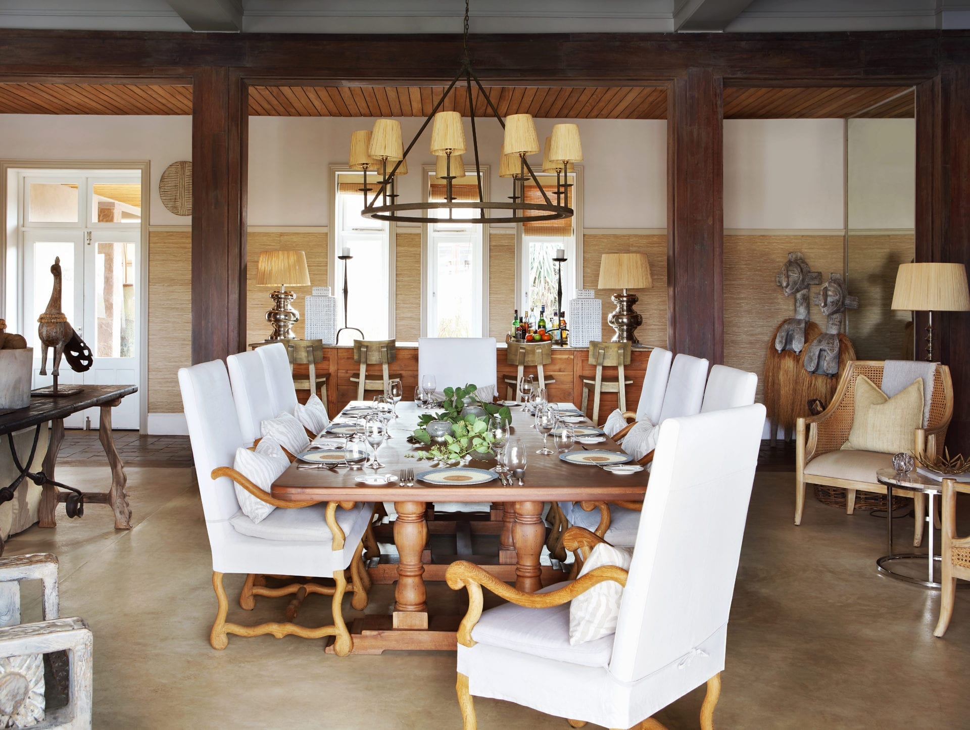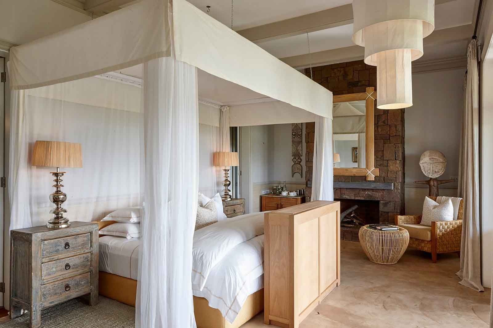 Четыре гостевых люкса виллы со смелыми пропорциями – каждый с безмятежными ванными комнатами, душем на открытом воздухе и собственными террасами – воплощают изысканную роскошь, подкрепленную современным комфортом. Внутренний декор, сочетающий европейский кантри-дизайн и африканские артефакты, создает неприхотливый стиль.