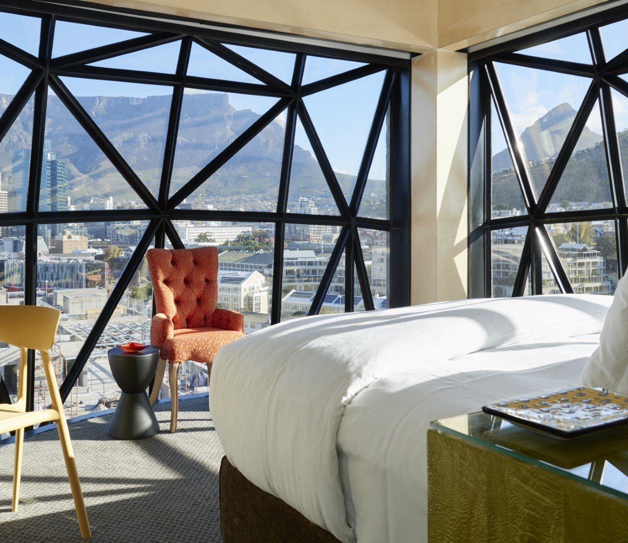 Один из самых примечательных элементов в дизайне номеров Silo - огромные фасетчатые окна: сквозь них можно любоваться панорамой города, Столовой горы и набережной Виктории, и Альберта, причем делать это можно прямо из ванны.